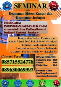 Yogyakarta , Seminar yang di adakan oleh Universitas Tehnology Yogyakarta bekerja-sama dengan Indonesian BackTrack Team. Berjalan dengan baik. Dukungan dari Indonesian BackTrack Team regional Yogyakarta membuat acara ini hidup. Para pemateri yang merupakan kolaburasi dari IBTeam Jakarta dan IBTeam Yogyakarta ternyata mendapat dukungan serta hasil yang luar biasa. Para pemateri dari jakarta membawakan live demo hacking serta penanganannya. IBTeam jogja yang ikut menurunkan personilnya membawakan live demo Web Attack yang berhasil memicu peserta untuk mempelajari keamanan jaringan dan data bersama BackTrack.